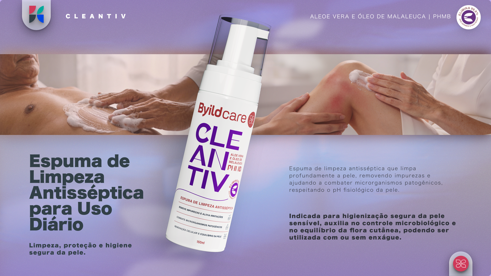 O CLEANTIV – Espuma de Limpeza Antisséptica foi desenvolvido para oferecer uma higienização completa e segura, especialmente para peles sensíveis e vulneráveis.